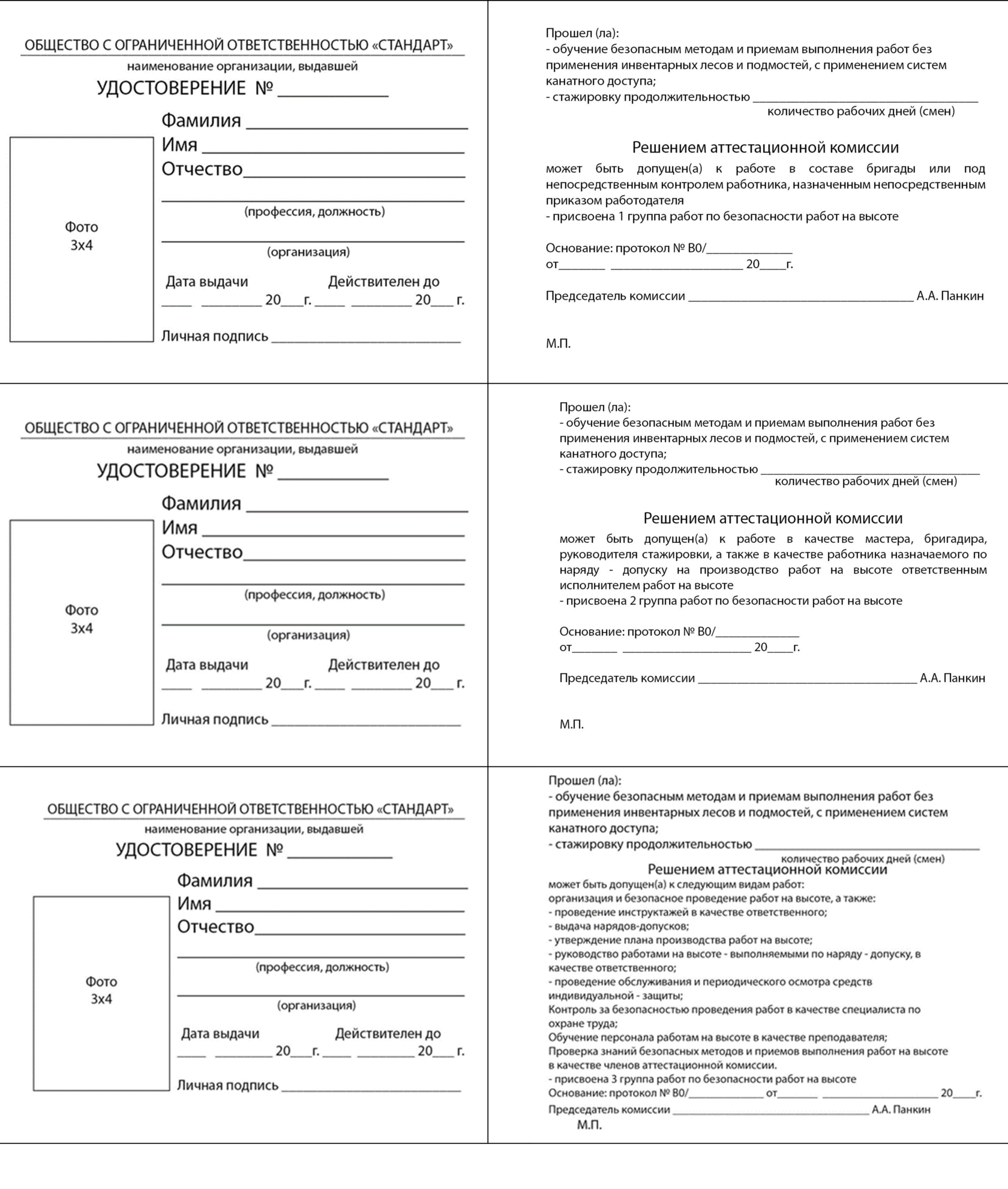 Работникам, допускаемым к работам на высоте, выдается оформленный на специальном бланке наряд-допуск на производство работ.